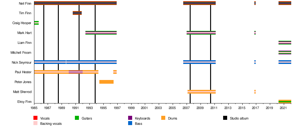Past members | Craig Hooper Paul Hester Tim Finn Peter Jones Mark Hart Matt Sherrod |