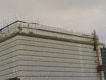 Throughout September to November 2005, the last office block located on the site, Wettern House, was slowly demolished under a protective wrapper to protect the rail infrastructure and surrounding buildings.