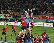 In the 2007 Super 14 season, seven Crusaders players missed the first seven rounds of the competition to participate in an All Black "conditioning programme".[53] The conditioning programme was part of the All Blacks' 2007 Rugby World Cup preparations; 22 players were selected for the programme. The Crusaders' seven players in the programme was more than any other New Zealand Super 14 franchise. The Crusaders players were Chris Jack, Richie McCaw, Greg Somerville, Reuben Thorne, Dan Carter, Leon MacDonald, and Aaron Mauger.[53][54][55] All but one of the seven returned to play for the Crusaders in their eighth round match against the Stormers (Greg Somerville did not return due to injury).[56] The Crusaders climbed to second on the table before defeating the Western Force 53–0 at Jade Stadium in the tenth round.[57] The victory over the Force was the one hundredth Super rugby win for the Crusaders – the first franchise to reach the milestone.[57][n 5]