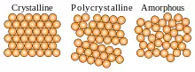 A crystal or crystalline solid is a solid material whose constituents (such as atoms, molecules, or ions) are arranged in a highly ordered microscopic structure, forming a crystal lattice that extends in all directions.[1][2] In addition, macroscopic single crystals are usually identifiable by their geometrical shape, consisting of flat faces with specific, characteristic orientations. The scientific study of crystals and crystal formation is known as crystallography. The process of crystal formation via mechanisms of crystal growth is called crystallization or solidification.