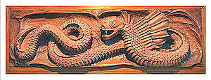 Cuélebre (Asturian) or Culebre (Cantabrian), is a giant winged serpent-dragon of the Asturian and Cantabrian mythology, that lives in a cave, guards treasures and keeps anjanas (also known as xanas) as prisoners. Although they are immortal, the cuélebre age, and their scales become thick and impenetrable, and bat wings grow in their bodies. They must eventually flee Asturias and fly to the Mar Cuajada, a paradise located beyond the sea.