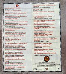 Cuauhtemoc's date of birth is unknown, as he does not enter the historical record until he became emperor.[1] He was the eldest legitimate son of Emperor Ahuitzotl[2] and may well have attended the last New Fire ceremony, marking the beginning of a new 52-year cycle in the Aztec calendar.[3] Like the rest of Cuauhtemoc's early biography, that is inferred from knowledge of his age, and the likely events and life path of someone of his rank.[4] Following education in the calmecac, the school for elite boys, and then his military service, he was named ruler of Tlatelolco, with the title cuauhtlatoani ("eagle ruler")[5] in 1515.[6] To have reached this position of rulership, Cuauhtemoc had to be a male of high birth and a warrior who had captured enemies for sacrifice.[7]