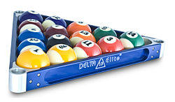 A rack is the name given to a frame (usually wood, plastic or aluminium) used to organize billiard balls at the beginning of a game. This is traditionally triangular in shape, but varies with the type of billiards played. There are two main types of racks; the more common triangular shape which is used for eight-ball and straight pool and the diamond-shaped rack used for nine-ball.
