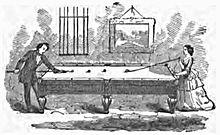 Engraving of an early billiards game with obstacles and targets, from Charles Cotton's 1674 book, The Compleat Gamester ![]() | |