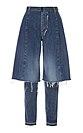 A cut which emerged in the 21st century - a combined silhouette of pants which appear to be made out of two separate garments. They look like slim fit jeans from behind, like a skirt or culottes worn on top of slim fit jeans - from the front.[11]