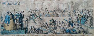 Part of the separate spheres ideology, the "Cult of Domesticity" identified the home as women's "proper sphere".[12] Women were supposed to inhabit the private sphere, running the household and production of food (including servants), rearing the children, and taking care of the husband.[13][14] According to Barbara Welter (1966), "True Women" were to hold and practice the four cardinal virtues:[3]