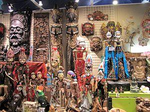 Indonesia is considered as home of world handicraft.[25] Every ethnic group has its own uniqueness, style, and philosophy of crafting.[25] Most of them are made from wooden, bone, fabric, stone, and paper. These natural materials were crafted using hands into profitable and aesthetic items.[25] Handicraft manufacturing serves not only as an important economic sector, but also a tradition and has a social function as well.[26] The handicraft industry employs thousands of people in towns and villages across the country. About half a billion dollar worth of handicraft is exported every year, and many more is consumed domestically.[25][26]