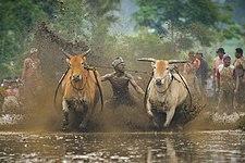 Many traditional games are still preserved and popular in Indonesia, although western culture has influenced some parts of them. Among three hundred officially recognised Indonesian cultures, there are many kinds of traditional games: cockfighting in Bali, annual bull races in Madura, and stone jumping in Nias. Stone jumping involves leaping over a stone wall about up to 1.5 m high and was originally used to train warriors. Pencak Silat is another popular form of sport, which was influenced by Asian culture as a whole. Another form of national sport is sepak takraw.[39] The rules are similar to volleyball: to keep the rattan ball in the air with the players' feet.