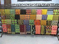 There are many varieties of handicraft from other regions.[25] West Sumatra and South Sumatra are particularly noted for their songket cloths.[27] Villages in the Lesser Sunda Islands produce ikat while provinces in Kalimantan are long known for their basketry and weaving using rattan and other natural fabrics.[28] Wood art produced by the Asmat people of Papua is highly valued.[29] Cities along Java's northern coast, Cirebon, Pekalongan, and Rembang are known as centres of batik.[30] Cirebon and Jepara are important cities in furniture, producing rattan and carved wood respectively,[31] while Tasikmalaya is known for embroidery.[32] Pasuruan also produces furniture and other products and support stores and galleries in Bali.[25] Bandung and Surabaya, both modern, cosmopolitan, and industrialised cities—much like Jakarta but on a lesser scale—are creative cities with a variety of innovative startups.[25]