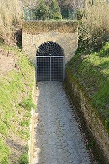 The Crypta Romana is a tunnel dug into the tufa under the Cuma hill, crossing the acropolis in an east-west direction, giving an easier route from the city to the sea. Its construction is part of the set of military enhancement works built by Agrippa for Augustus and designed by Lucius Cocceius Auctus in 37 BC, including the construction of the new Portus Iulius and its connection with the port of Cumae through the so-called Grotta di Cocceio and the Crypta Romana itself.