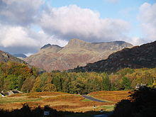 The route leaves Coniston heading in a NNW direction through woodland towards Tarn Hows. The way involves some road walking as it passes through the villages of Colwith and Skelwith Bridge. The Langdale Pikes soon become visible as the route leaves Skelwith Bridge in a NNE direction, passing Elter Water before entering the Great Langdale valley.[7] This stage is approximately 17.5 km (11 mi) in length.