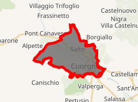 Cuorgnè is located at the mouth of the Orco Valley, and borders the following municipalities: Castellamonte, Pont Canavese, Borgiallo, Chiesanuova, Alpette, San Colombano Belmonte, Canischio, Valperga, and Prascorsano.