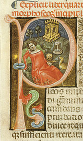 Apuleius's novel was among the ancient texts that made the crucial transition from roll to codex form when it was edited at the end of the late 4th century. It was known to Latin writers such as Augustine of Hippo, Macrobius, Sidonius Apollinaris, Martianus Capella, and Fulgentius, but toward the end of the 6th century lapsed into obscurity and survived what was formerly known as the "Dark Ages" through perhaps a single manuscript.[34] The Metamorphoses remained unknown in the 13th century,[35] but copies had begun to circulate in the mid-1300s among the early humanists in Florence.[36] Boccaccio's text and interpretation of Cupid and Psyche in his Genealogia deorum gentilium (written in the 1370s and published 1472) was a major impetus to the reception of the tale in the Italian Renaissance and to its dissemination throughout Europe.[37]