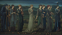 Cupid and Psyche is a rich source for scenarios, and several artists have produced cycles of works based on it, including the frescoes at the Villa Farnesina (ca. 1518) by Raphael and his workshop; frescoes at Palazzo del Tè (1527–28) by Giulio Romano; engravings by the "Master of the Die" (mid-16th century); and paintings by the Pre-Raphaelite Edward Burne-Jones (in the 1870s–90s).[81] Burne-Jones also executed a series of 47 drawings intended as illustrations for Morris's poem.[82] Cupid and Psyche was the subject of the only cycle of prints created by the German Symbolist Max Klinger (1857–1920) to illustrate a specific story.[83]