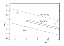 | in pure water, or acidic or alkali conditions. Copper in neutral water is more noble than hydrogen. | in water containing sulfide | in 10 M ammonia solution | in a chloride solution |
