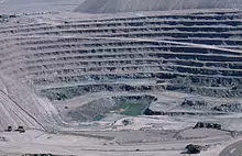 Most copper is mined or extracted as copper sulfides from large open pit mines in porphyry copper deposits that contain 0.4 to 1.0% copper. Sites include Chuquicamata, in Chile, Bingham Canyon Mine, in Utah, United States, and El Chino Mine, in New Mexico, United States. According to the British Geological Survey, in 2005, Chile was the top producer of copper with at least one-third of the world share followed by the United States, Indonesia and Peru.[11] Copper can also be recovered through the in-situ leach process. Several sites in the state of Arizona are considered prime candidates for this method.[24] The amount of copper in use is increasing and the quantity available is barely sufficient to allow all countries to reach developed world levels of usage.[25] An alternative source of copper for collection currently being researched are Polymetallic nodules, which are located at the depths of the Pacific Ocean approximately 3000-6500 meters below sea level. These nodules contain other rare earth metals such as cobalt and nickel.[26]