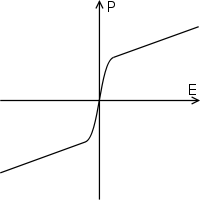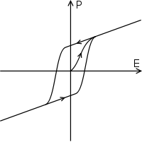 Ferroelectric materials' polarization is subject to hysteresis (Figure 4); that is they are dependent on their past state as well as their current state. As an electric field is applied the dipoles are forced to align and polarisation is created, when the electric field is removed polarisation remains. The hysteresis loop depends on temperature and as a result as the temperature is increased and reaches T0 the two curves become one curve as shown in the dielectric polarisation (Figure 5).[48]