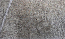 The unique gene that gives Curlies their curly hair (which is most obvious with their winter coat) can be expressed minimally (horse exhibits curly hair inside ears, at fetlocks, and a kinky mane and tail), maximally (horse exhibits curl all over body, has dreadlocked mane, and has curly eyelashes and guard hairs), and "Extreme" (very tight, extreme curls, but when they shed out for summer can shed entirely bald) or any variation in between. The coat in the summer shows a slight wave in it, but not as extreme as the winter curls.[2]