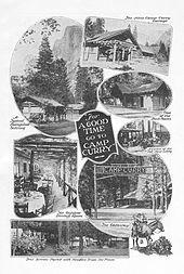 In 1899 David A. Curry and Jenny Etta Foster (later known as Mother Curry) opened a tented camp.[6] They advertised "a good bed and clean napkin with every meal" for $2 a day (equivalent to $61 in 2019 dollars.)[7]