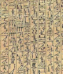 Cursive hieroglyphs, or hieroglyphic book hand, are a form of Egyptian hieroglyphs commonly used for handwritten religious documents, such as the Book of the Dead.[1] This style of writing was typically written with ink and a reed brush on papyrus, wood, or leather.[1] It was particularly common during the Ramesside Period, and many famous documents, such as the Papyrus of Ani, utilize it. It was also employed on wood for religious literature such as the Coffin Texts.