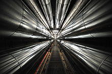 A temporary access shaft is sometimes necessary during the excavation of a tunnel. They are usually circular and go straight down until they reach the level at which the tunnel is going to be built. A shaft normally has concrete walls and is usually built to be permanent. Once the access shafts are complete, TBMs are lowered to the bottom and excavation can start. Shafts are the main entrance in and out of the tunnel until the project is completed. If a tunnel is going to be long, multiple shafts at various locations may be bored so that entrance to the tunnel is closer to the unexcavated area.[5]