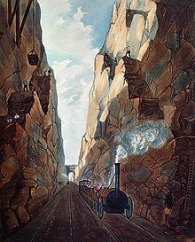 The term cutting appears in the 19th century literature to designate rock cuts developed to moderate grades of railway lines.[1] Railway Age's Comprehensive Railroad Dictionary defines a cut as "a passage cut for the roadway through an obstacle of rock or dirt".[2]