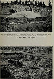 The Kennedy mine shaft reached ore in April 1908 and the first shipment was made via rail on 11 April 1911. Open pit mining started at the Rowe mine in 1912. In addition to the iron, the ore was rich in manganese, which was useful during World War I, with 32 mines operating.[1]:6