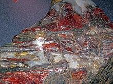 The main iron ore bearing formation is the middle Precambrian Trommald Formation, which belongs in the Animikie Group. This is a chert containing oxidized iron in the form of hematite and goethite. Some clastic quartz sands and argillaceous layers.[1]:18–25 The agate variant Binghamite is found only in the Cuyuna Range.