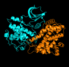 - ^ PDB: 1FIN; Jeffrey PD, Russo AA, Polyak K, Gibbs E, Hurwitz J, Massagué J, Pavletich NP (July 1995). "Mechanism of CDK activation revealed by the structure of a cyclinA-CDK2 complex". Nature. 376 (6538): 313–20. Bibcode:1995Natur.376..313J. doi:10.1038/376313a0. PMID 7630397. S2CID 4361179.