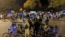Other concerns have also arisen about the behavior of militant cyclists and their imposition of pro-cyclist laws and accommodations at the expense of other commuters and citizens.[41] The concerns also extend to the disruption to other forms of transportation by militant cyclists and endangering their own safety as well as others including pedestrians through constant intrusion, imposition and violations of traffic laws.[42][43]