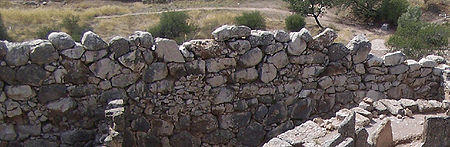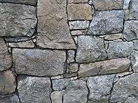 Cyclopean masonry is a type of stonework found in Mycenaean architecture, built with massive limestone boulders, roughly fitted together with minimal clearance between adjacent stones and with clay mortar or[1] no use of mortar. The boulders typically seem unworked, but some may have been worked roughly with a hammer and the gaps between boulders filled in with smaller chunks of limestone.