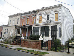 Typical multi-unit semi-detached rowhouses in East New York | |