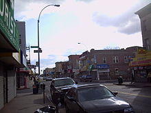 City Line is a sub-section of East New York bordering the neighborhoods of Cypress Hills to the north and southwest and Ozone Park (Queens) to the east. The neighborhood is named "City Line" for its location in the former City of Brooklyn near the border with Queens County before Brooklyn and parts of Queens County were consolidated into New York City in 1898.[34] Many Italians, Germans and Irish originally lived in the area, which today is home to immigrants from Bangladesh, the Dominican Republic, Guyana, and Puerto Rico.[35] The neighborhood also includes African-Americans and Latino-Americans, and a scattered presence of South Asian-Americans.[36][37] The main commercial district is located along Liberty Avenue. City Line is home to many restaurants, shopping stores, and food markets.