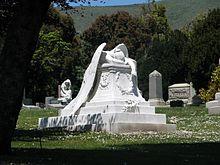 Jennie Roosevelt Pool memorial marked with the Angel of Grief