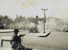 The Turkish air force began bombing Greek positions in Cyprus, and hundreds of paratroopers were dropped in the area between Nicosia and Kyrenia, where well-armed Turkish Cypriot enclaves had been long-established; while off the Kyrenia coast, Turkish troop ships landed 6,000 men as well as tanks, trucks and armoured vehicles.[117][118]