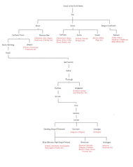 The senior line descended from Cas' first son Bloid and they provided the Kings of Thomond. Initially the leaders of the tribe were a sept known as the Uí Aengusa from which descends O'Curry, O'Cormacan and O'Seasnain. However, during the 10th century, this passed to the junior Uí Thairdelbaig. It is this kindred which would furnish the High Kings of Ireland and the Kings of Thomond including Brian Bóruma. From the Uí Thairdelbaig came O'Brien, O'Kennedy (who were Kings of Ormond), MacConsidine, MacMahon, O'Reagan, MacLysaght, O'Kelleher, Boland, Cramer, Kearney, O'Casey, Power, Twomey, Eustace, Ahearne, MacGrath, Quick, O'Meara, Scanlan, MacArthur, Cosgrave, O'Hogan, Lonergan and others.[11][12] O'Noonan and Coombe are other notable Uí Bloid descendants.[11] A younger brother of Carthann Fionn (who both the Uí Thairdelbaig and Uí Aengusa derive) named Brennan Ban stands at the head of the genealogies for the O'Brennan, Glinn, Muldowney and O'Hurley septs.[11]