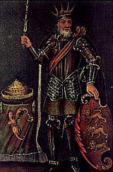 The Dál gCais polity up until the 10th century was approximately co-terminus with modern East Clare and exercised a large degree of regional autonomy from the Eóganachta Kings of Munster, and were powerful enough to kill the King of Cashel in battle in 713.[27] The earliest Kings were derived from the Uí Oengusso kindred (descendants of Oengus, senior son of Carthann Finn who is said to be the first King of Dál gCais). On the death of Reabacán Mac Mothla in 934 the Kingship passed to the junior branch of Uí Toirdhealbhach descended from Eochaidh Bailldearg, another son of Carthann and the power of the Dál gCais began to expand greatly. Cinnéidigh was the first Dalcassian King to lead an army beyond his own territory and was acknowledged as King of Thomond by his death. His son Mathgamain built on these achievements, capturing Cashel and becoming King of Munster. The best-known member of this dynasty, Brian Boru, took over after his brother Mathgamain's death, reclaimed the Munster kingship and eventually succeeded in establishing himself as High King of Ireland before his famous death in the Battle of Clontarf. The Dál gCais under Brian's descendants, the Ua Briain would provide a further three High Kings of Ireland and exercised supremacy in Munster until Tairrdelbach Ua Conchobair, taking advantage of war between brothers Diarmait and former High-King Muircheartach, invaded Munster and split it in two in the Treaty of Glanmire (1118) granting Thomond to the sons of Diarmait Ua Briain and Desmond to the leading sept of the dispossessed Eoganacht, the Mac Cárthaigh dynasty. After the death of Domnall Mór Ua Briain, a claimant to the Kingship of Munster, they further retreated beyond the Shannon into the area of modern County Clare in the wake of the Norman Invasion. In 1276 King Edward II granted all of Thomond to Thomas de Clare, taking advantage of the feuding between Clann Taidhg and Clann Briain (whom de Clare supported). The de Clares failed in conquering Thomond and were decisively defeated in the Battle of Dysert O'Dea in 1318, thus the Kingdom of Thomond remained outside of foreign control for a further 200 years.[28] In 1543 Murchadh Carrach Ó Briain, under pressure from the impending Tudor conquest, agreed to surrender his Gaelic Royalty to King Henry VIII and accepted the titles Earl of Thomond and Baron Inchiquin. At his death in 1551 the Earldom passed to his nephew Donough by special remainder and the title Baron Inchiquin passed to his male heirs through his son Dermot. The Earldom went extinct at the death of Henry O'Brien, 8th Earl of Thomond, the next heir would have been a descendant of Daniel O'Brien, 3rd Viscount Clare who was attainded in 1691, so the title became forfeit. However, Charles O'Brien, 6th Viscount Clare, a Jacobite exile used the title Earl of Thomond, as did his son, who died childless in 1774. At the death of James O'Brien, 3rd Marquess of Thomond, the title Baron Inchiquin passed to a distant cousin and descendant of Murrough, Sir Lucius O'Brien, 5th Baronet and was passed down to his descendants.