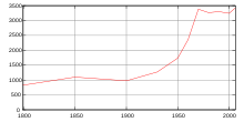 Döttingen has a population (as of December 2019) of 4,139[7] As of June 2009, 39.1% of the population are foreign nationals.[8] Over the last 10 years (1997–2007) the population has changed at a rate of 5.4%. Most of the population (as of 2000) speaks German (76.2%), with Italian being second most common ( 7.8%) and Albanian being third ( 4.4%).[9]