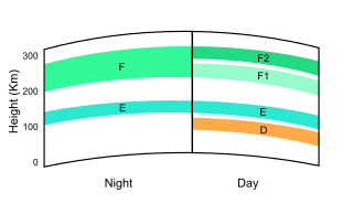 At night the F layer is the only layer of significant ionization present, while the ionization in the E and D layers is extremely low. During the day, the D and E layers become much more heavily ionized, as does the F layer, which develops an additional, weaker region of ionisation known as the F1 layer. The F2 layer persists by day and night and is the main region responsible for the refraction and reflection of radio waves.