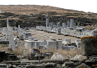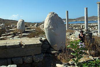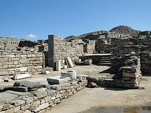- The Oikos of the Naxians (House of the Naxians) first quarter of 6th century BCE: a long hall with one central ionic colonnade, a west porch tristyle in antis and an east marble prostasis of the middle of the 6th century BCE.[17]