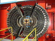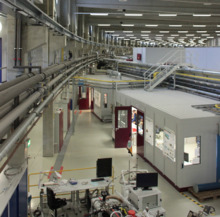 PETRA III is the third incarnation for the PETRA storage ring operating a regular user programme as the most brilliant storage ring based X-ray source worldwide since August 2010. The accelerator produces a particle energy of 6 GeV.[7] There are currently three experimental halls (named after various famous scientists) which host up to 30 experiments simultaneously. The largest, named the Max von Laue Hall, has a concrete floor over 300m long that was poured as a single piece in order to limit vibrations.[8]