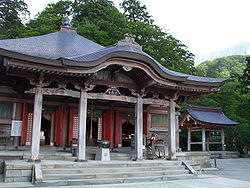 Daisen, from early times, was considered a sacred mountain by practitioners of Koshintō, an early form of the Shinto religion.[2] By the 7th century the area became a center of shugendō, a syncretic religion which incorporated aspects Koshintō, Japanese folk animism and shamanism, Taoism and esoteric Buddhism of the Shingon Mikkyō and the Tendai sects.[3] After the 9th century, this temple came under the control of the Tendai Buddhist sect as one of the most important of its centers in this region. The head monk, or Zashu, of this temple had been sent from the Enryaku-ji in Kyoto, the headquarters of Tendai sect.
