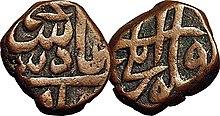 A Dam was a small Indian copper coin. The coin was first introduced by Sher Shah Suri during his rule of India between 1540 and 1545, along with Mohur, the gold coin and Rupiya the silver coin.[1] Later on, the Mughal Emperors standardised the coin along with other silver (Rupiya) and gold (Mohur) coins in order to consolidate the monetary system across India. A rupee was divided into 40 dams.