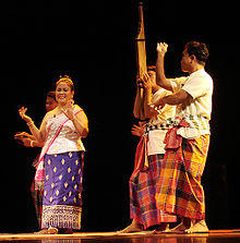 The dance and theatre of Laos (nattakam Lao, Lao: ນາດຕະກັມລາວ [nâːt táʔ kam láːw]) is the primary dramatic art form of Laos' majority ethnic group, the Lao people. It is shared with the ethnic Lao that inhabit the Isan region of Thailand as well. There are mainly two types of dances (or dance-dramas), the classical dances performed in the royal courts and the folk dances now associated with morlam.[1]