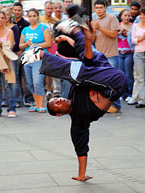 Street dance – a Breakdancer performs a handstand trick