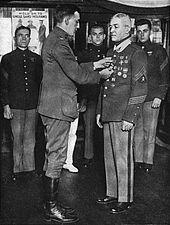 | Haitian Campaign Medal | World War I Victory Medal with Aisne, St. Mihiel, Meuse-Argonne, and Defensive-Sector clasps, and Citation Star | Médaille militaire | WWI Croix de Guerre with bronze Palm | ||||||||