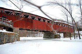 Nowadays the only remaining example in the world of the McCallum truss is the Percy Covered Bridge (1861),[38] ironically an automobile and footbridge. It crosses the Chateauguay River at Powerscourt, Québec, between the municipalities of Elgin and Hinchinbrooke.