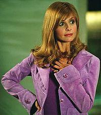 In these movies, Daphne and Fred began a relationship in the first that followed on through the second. Unlike the previous incarnation of the character, Gellar's version of Daphne is trained in martial arts during Mystery Inc.'s 2-year-long departure in the first film, as she is tired of being a damsel in distress on every case that she is involved in with the gang. Coincidentally, this subversion of the damsel in distress to a strong female fighter almost mirrors Gellar's widely recognized role of the title character in the TV series Buffy the Vampire Slayer. Though in the first movie, she is captured by the masked wrestler Zarkos, she beats him in a fight at the end.
