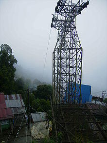 The Darjeeling Ropeway is a ropeway in the town of Darjeeling in the Indian state of West Bengal.[1] The ropeway is a tourist destination in the town. It consists of sixteen cars and plies between the "North Point" in the town of Darjeeling and Singla on the banks of the Ramman river. The journey on the ropeway offers views of the hills and the valleys around Darjeeling.