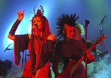 Dark wave or darkwave, is a music genre that emerged from the new wave and post-punk movement of the late 1970s.[5][6] Dark wave compositions are largely based on minor key tonality and introspective lyrics and have been perceived as being dark, romantic and bleak, with an undertone of sorrow.[5][7] Common features include the use of chordophones such as electric and acoustic guitar, violin and piano, as well as electronic instruments such as synthesizer, sampler and drum machine. The genre embraces a range of styles including cold wave,[8] ethereal wave,[9] gothic rock,[8][10][6] neoclassical dark wave[11] and neofolk.[10]